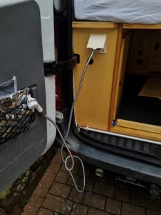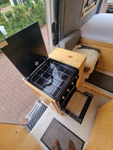 Völlig autark. 3 Photovoltaikpanele à108 W., Batterie BullTron 300AH ,Truma Gasheizung, Wynen Gastank unter dem Fahrzeug, viel Stauraum, 3×20 Liter Frischwasserkanister, Abwassertank innenliegend ca 35 Liter, Wechselrichter 2000w mit 3x220v Steckdose im Fahrzeug,