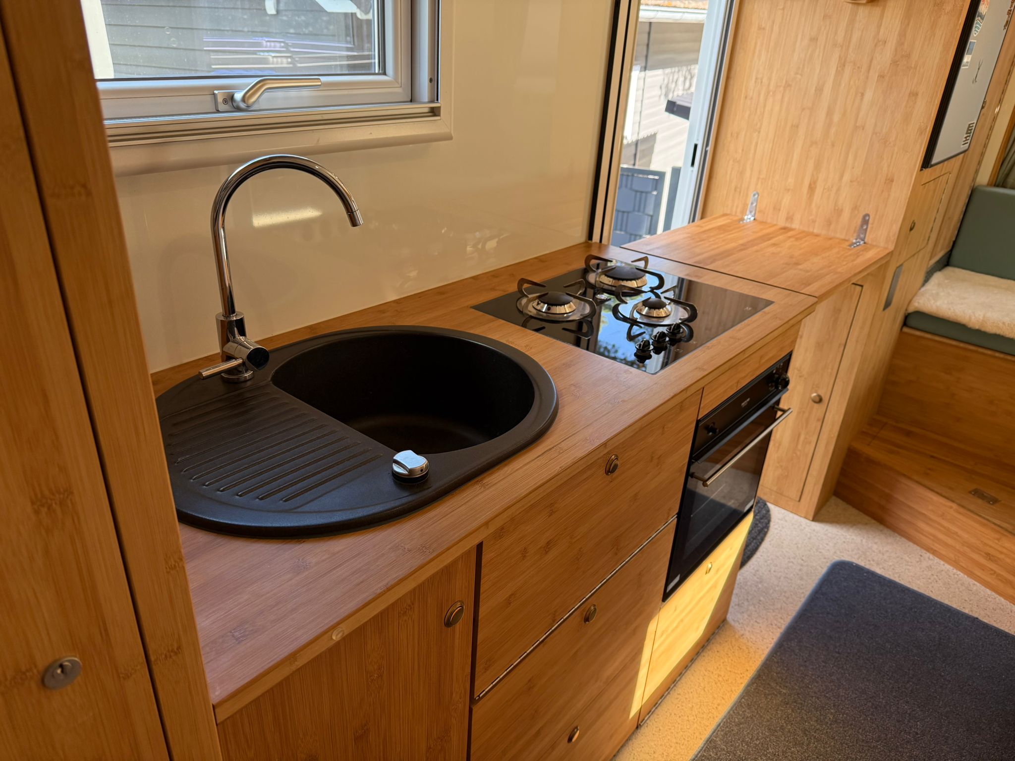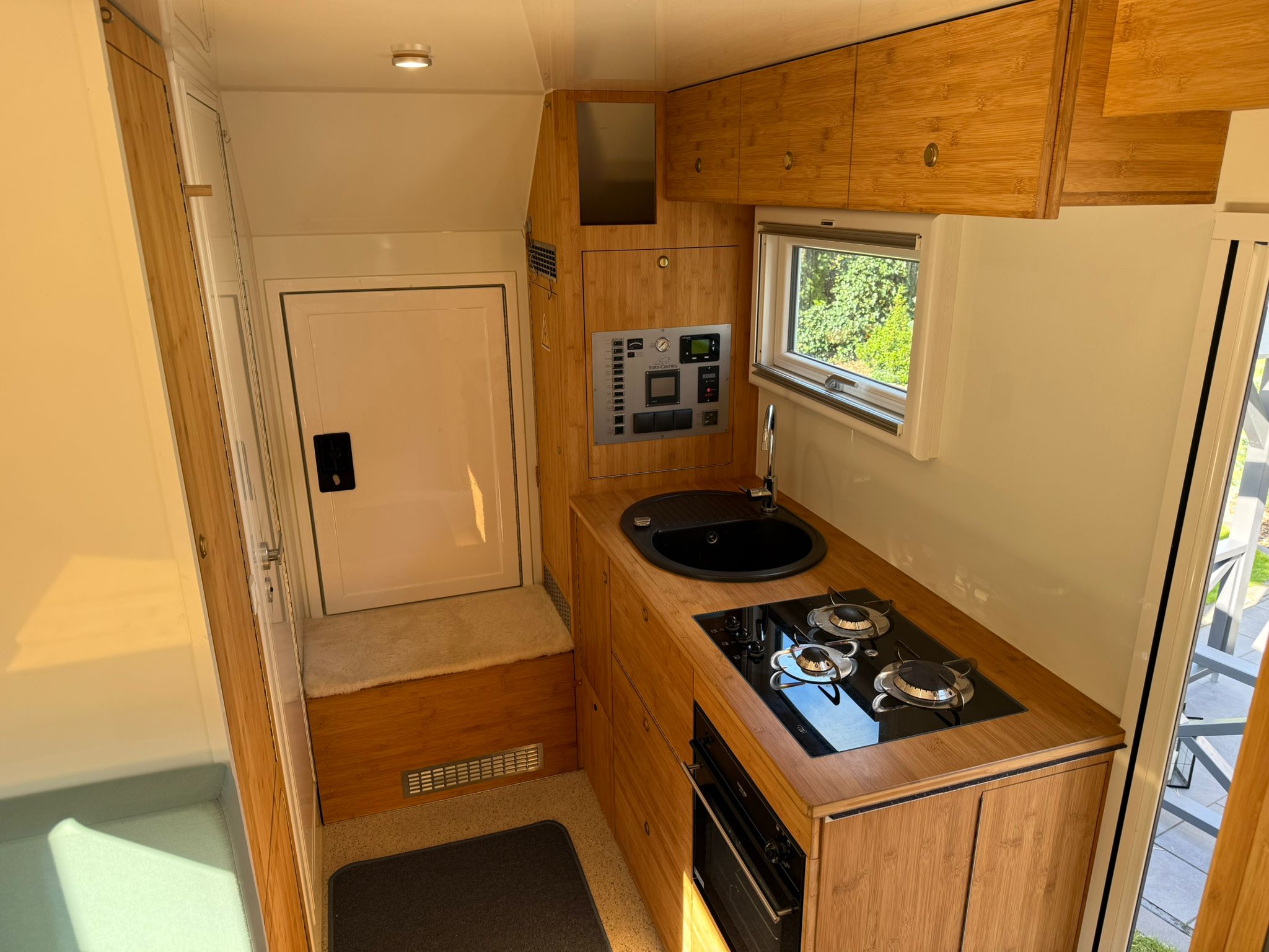 - Innenbeleuchtung: LED Stablampen in Küche und Bad; Leselampen Schwanenhals dimmbar, Deckenlampen Lumicoin (über dem Esstisch dimmbar)