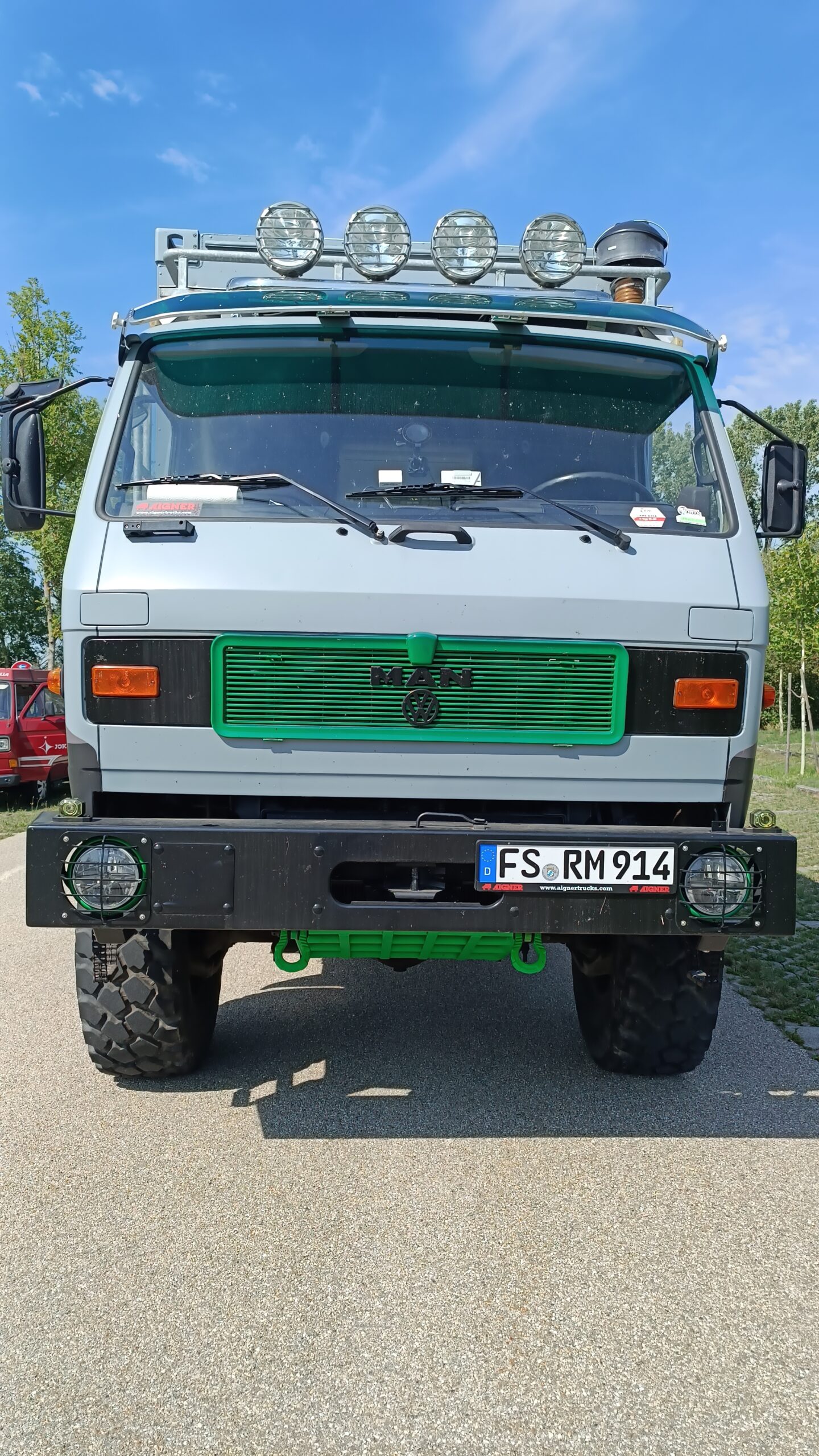 8.000kg zulässiges GG ( Ablastung auf 7.49 möglich ) / Keine Elektronik, die Notlaufsituationen oder Starthemmung befürchten läßt wie bei neueren Fahrzeugen / 365/80 R 20 Michelin XZL / Zyklonfilter / Beadlockfelgen / 300 Liter + 200 Liter Dieseltank / Separfilter / 1x Reserverad