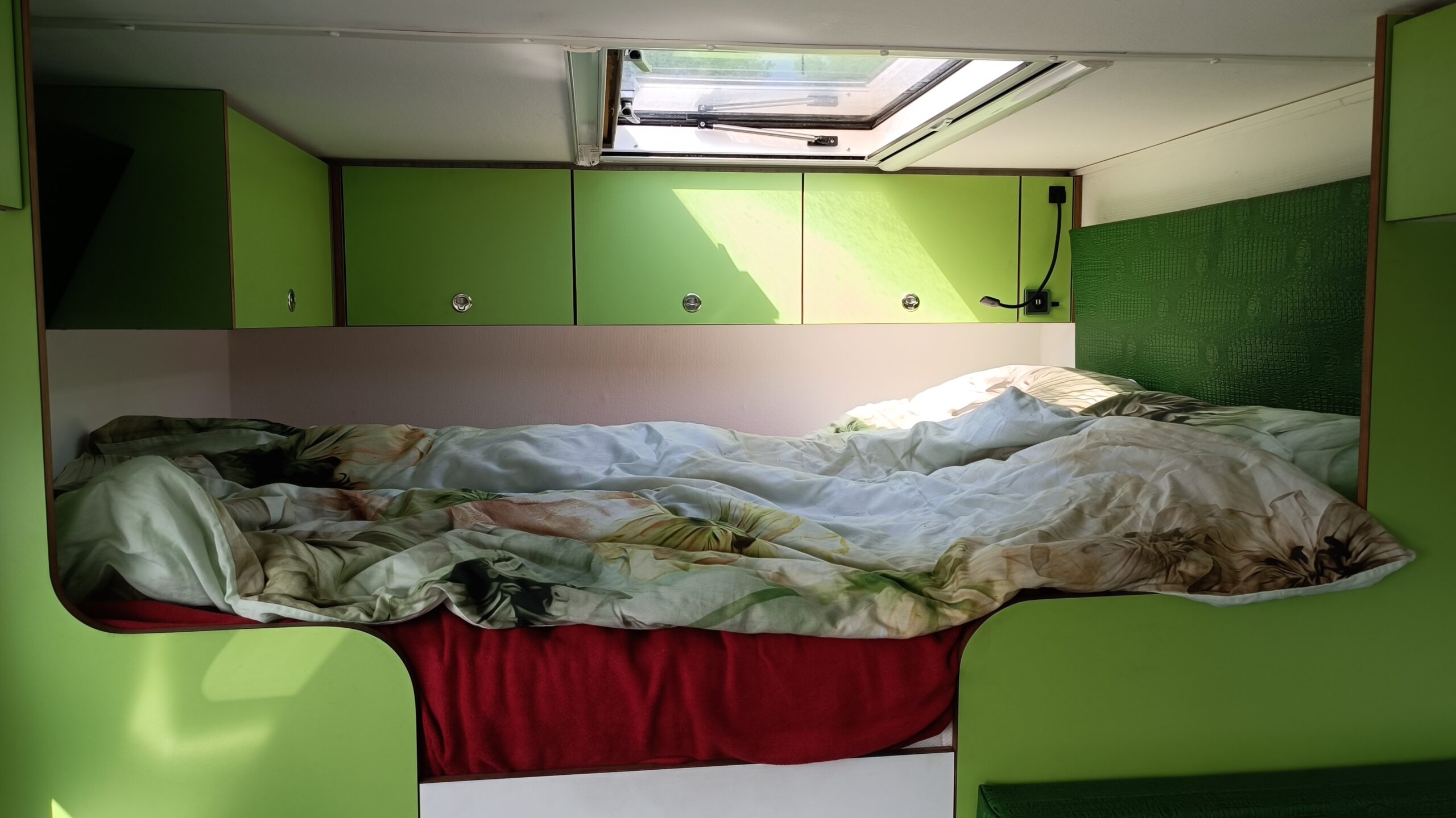 Dieselheizung Autoterm Air 2D / Trockentrenntoilette Separett Villa 900 / LED Beleuchtung Lumicoin / diverse Steckdosen 230V und mehrere USB Steckdosen / SAT Anlage Cytrax DX Premium mit 24“Monitor / An allen Schubladen etc. Southco Schnappverschlüsse / Bett 150 x 200