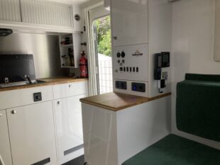 Über die Standardausstattung hinaus besitzt der Trailer u.a. ein Vorzelt und Markise, Thermo-Isolierung für Aufstelldach, Fahrradträger für 2 Fahrräder, große Deichselbox mit 2 Türen, Zusatzkanister für Wasser und Treibstoff, Toilette, Außendusche warm/kalt, Truma Gasheizung, Truma Klimaanlage, Dunstabzugshaube und Spritzwand in Küche, Safe, zusätzliche Airline-Schienen, umfangreiches Elektro-Paket inkl. Zusatz-Arbeitscheinwerfer, Außenbeleuchtung, Rückfahrkamera, Video-Überwachung außen, WLAN und TV. Kaufpreis 69.300,00 Euro.