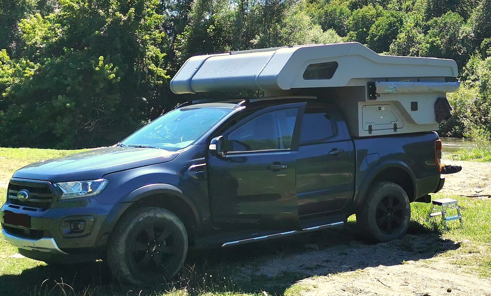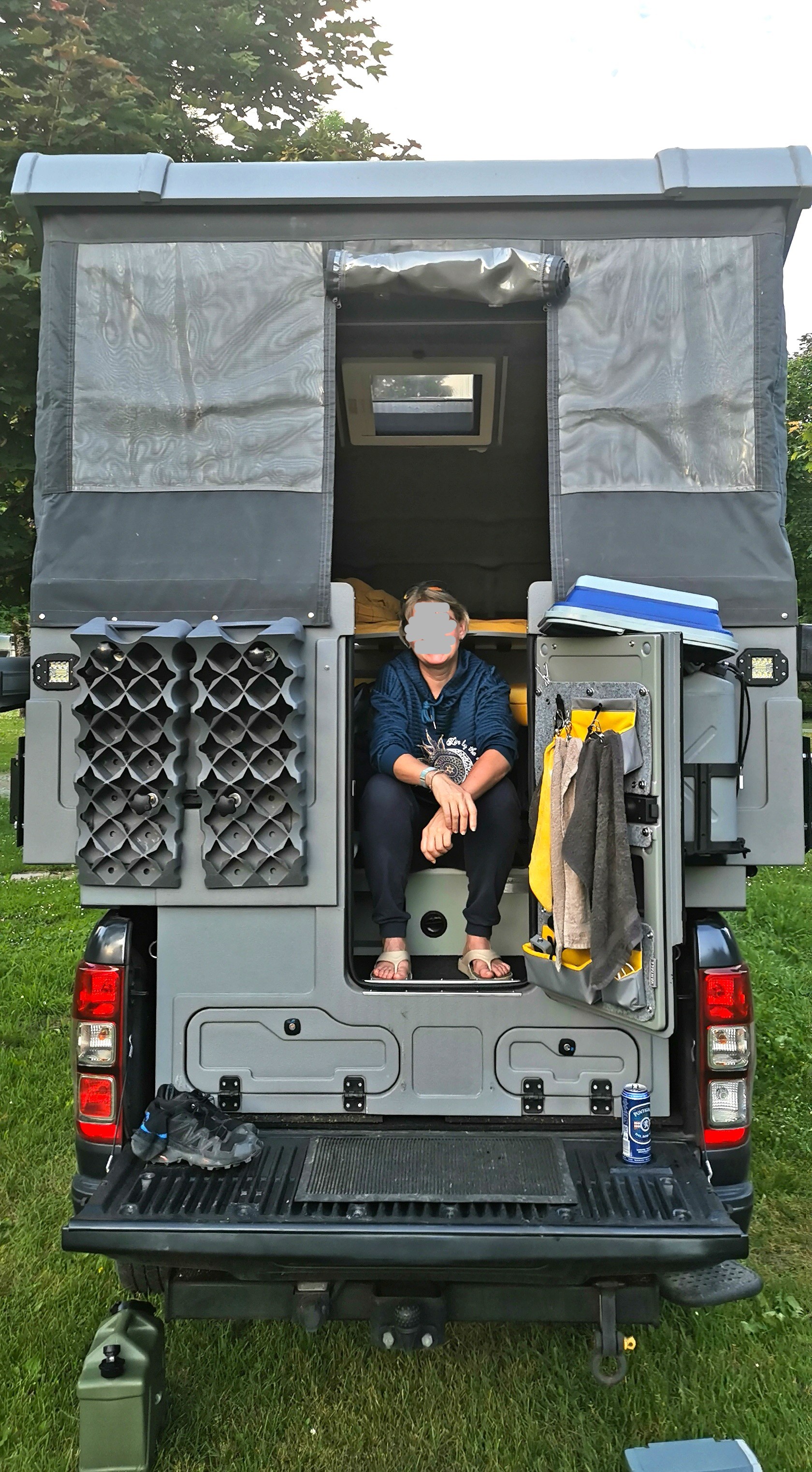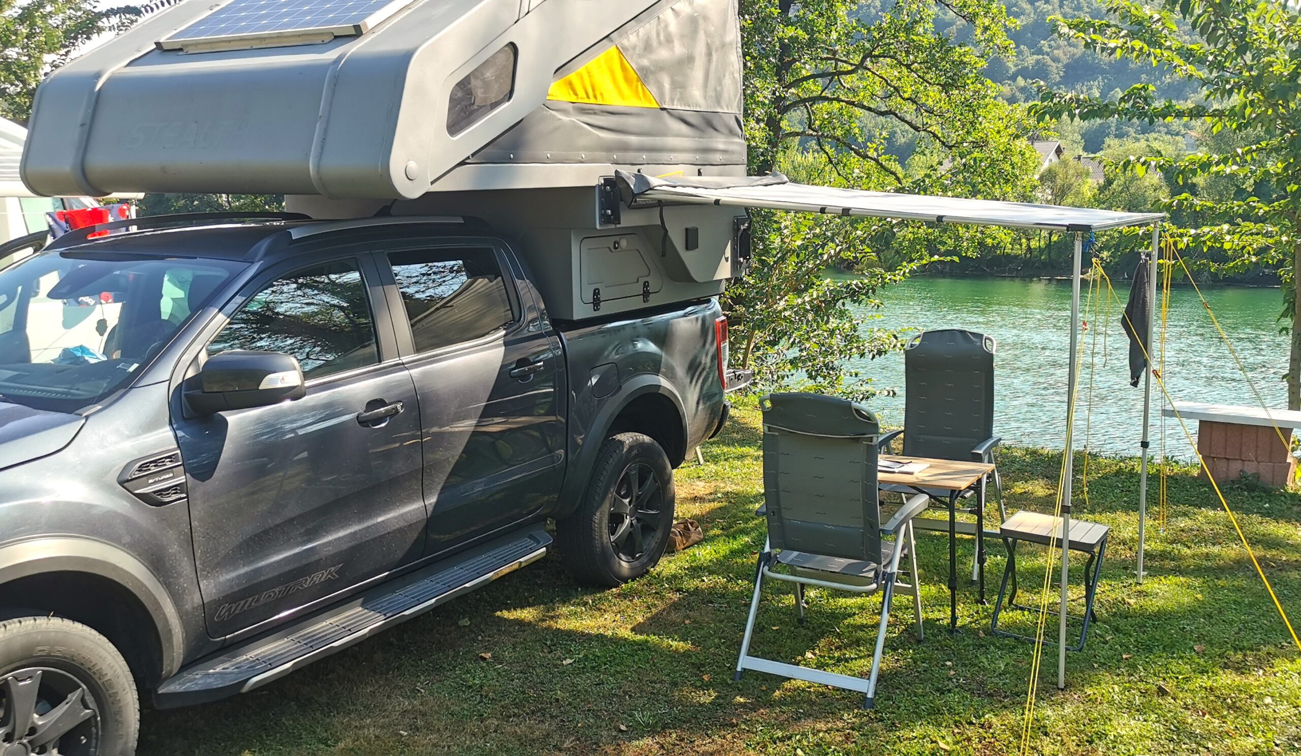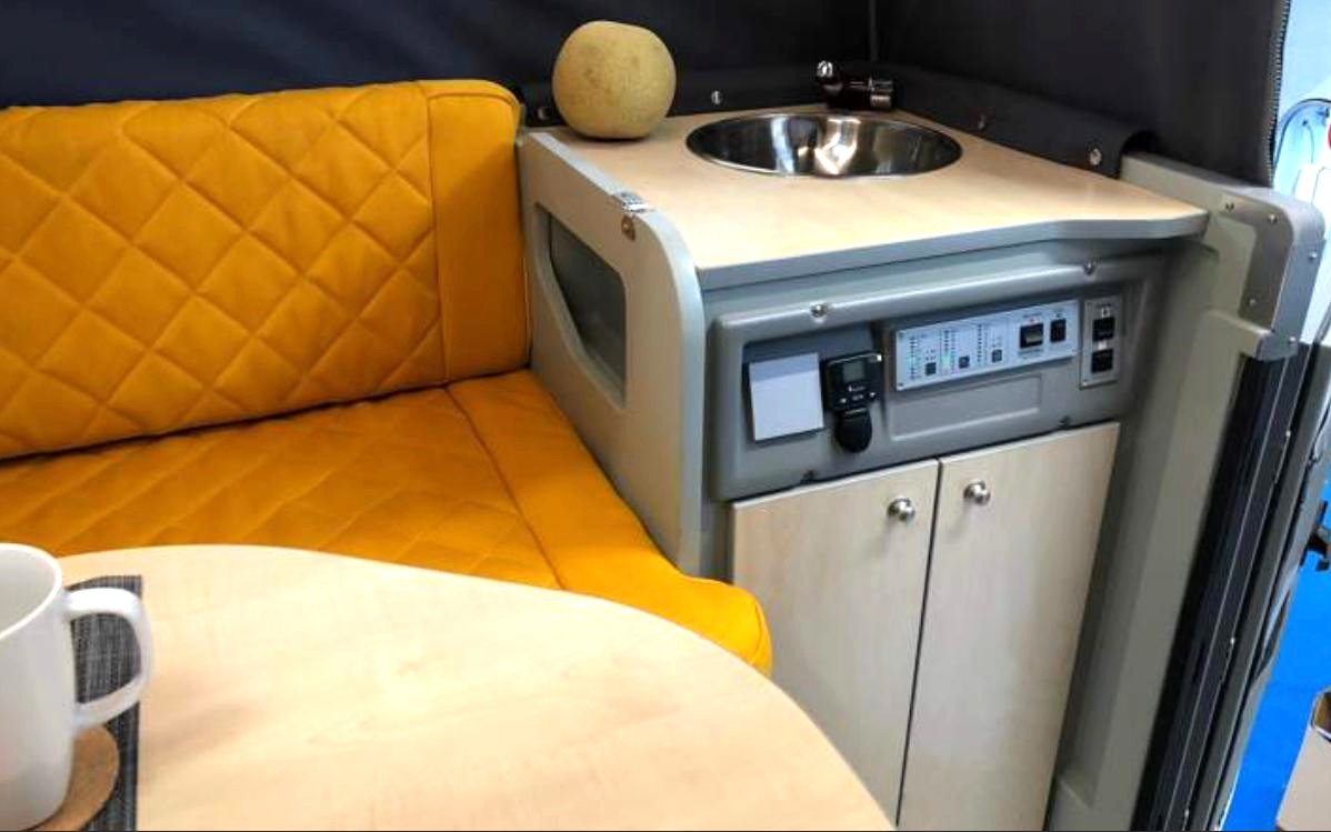 Die Wohnkabine wird elektr. auf- bzw. zugeklappt (mittels Hörmann 12V-Torantrieb).