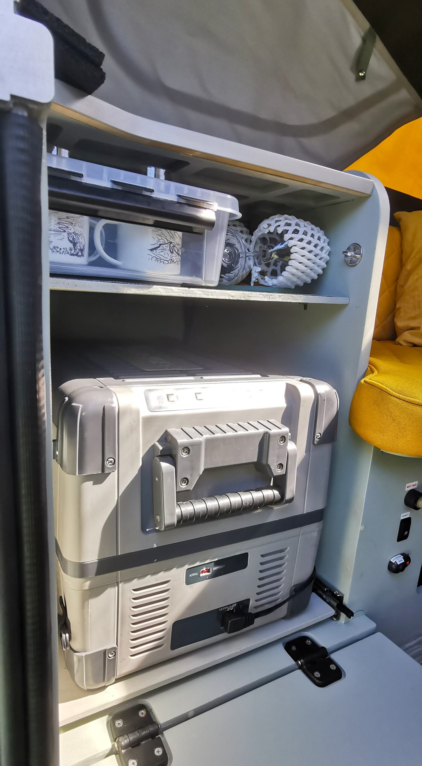 - 12V Kompresser-Kühlbox (auf ausziehbarem Bodenfach)