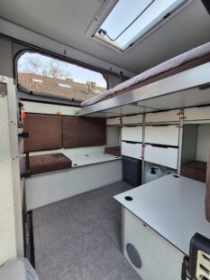 Beide Sitzflächen sind zu 2 weiteren oder alternativen, vollwertigen Liegeflächen umbaubar. Dach geschlossen = 2 Schlafplätze / Dach offen 4 Schlafplätze. Fußloser Tisch einhängbar. Küchenblock mit soliden Vollauszügen Aluminiumschubkästen mit HPL Fronten / 40 L Kompressorkühlbox auf Vollauszug / Edelstahlspüle, 230 V und 12 V Steckdosen. Innenausbau und Regalsystem aus 20 mm Monopan Leichtbaumaterial wie Kabine. 8 Staukästen Euroboxen mit HPL Fronten. 3 x 20 Liter Frischwasserkanister. Tauchpumpe für Spülenarmatur. Zusatzarbeitsplatte Outdoor zum Einhängen. Beinlose HPL Einhängetischplatte innen ( gleichzeitig Bettverlängerung für 2.ten Schlafplatz unten ). Neue unbenutzte Trevino Evo M Trockentrenntoilette. Dimmbare Beleuchtungen LED. USB B+C Steckdosen. 6 Kanal Schaltpaneel. Victron Smart Messshunt mit Anzeige sowie Bluetooth. Victron Smart 230 V 30 Ah Ladegerät + Victron Smart Solar MPPT + 2 x flexible 100 w Solarzellen verstaut unter Matratzen und mit 5 m Leitung flexibel platzierbar. 2 x Lifepo4 100 Ah, 1500 w Inverter. Autotherm Standheizung 2 kw.