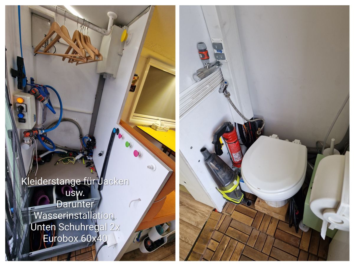 - Externe 230V-Zusatzpumpe, um Wasser aus Flüssen und Seen zu tanken. Durch die Filteranlage und UV-Entkeimung können wir aus jedem Wasser trinkbares Wasser machen. Wir trinken immer unser Tankwasser, kaufen nie Flaschen-Wasser und hatten noch nie Probleme.