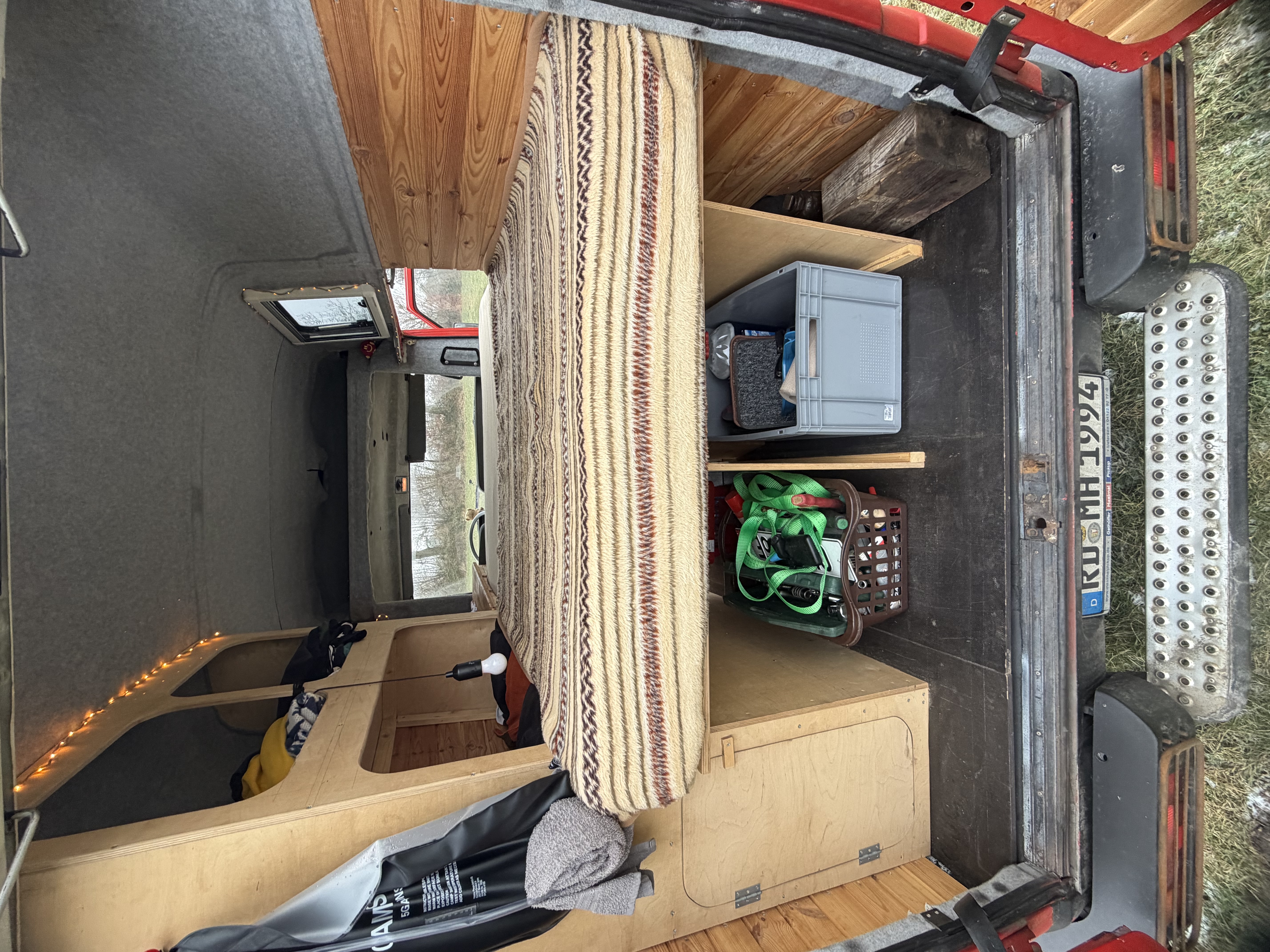 Ich habe alles aus dem vorherigen Ausbau entfernt, sodass er komplett leer war, habe gründliche Schweiß Arbeiten gemacht, sowie einiges repariert ( erneuert ) Um Ihn nach und nach mit Liebe – und viel Freude, auszubauen.