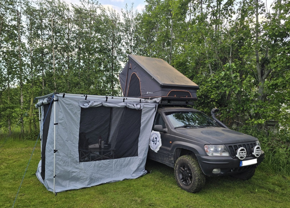 - Dachzelt für 2 weitere Personen kann optional miterworben weden (5 Nächte benutzt, also wie neu)Heckfenster lässt sich von Innen öffnen