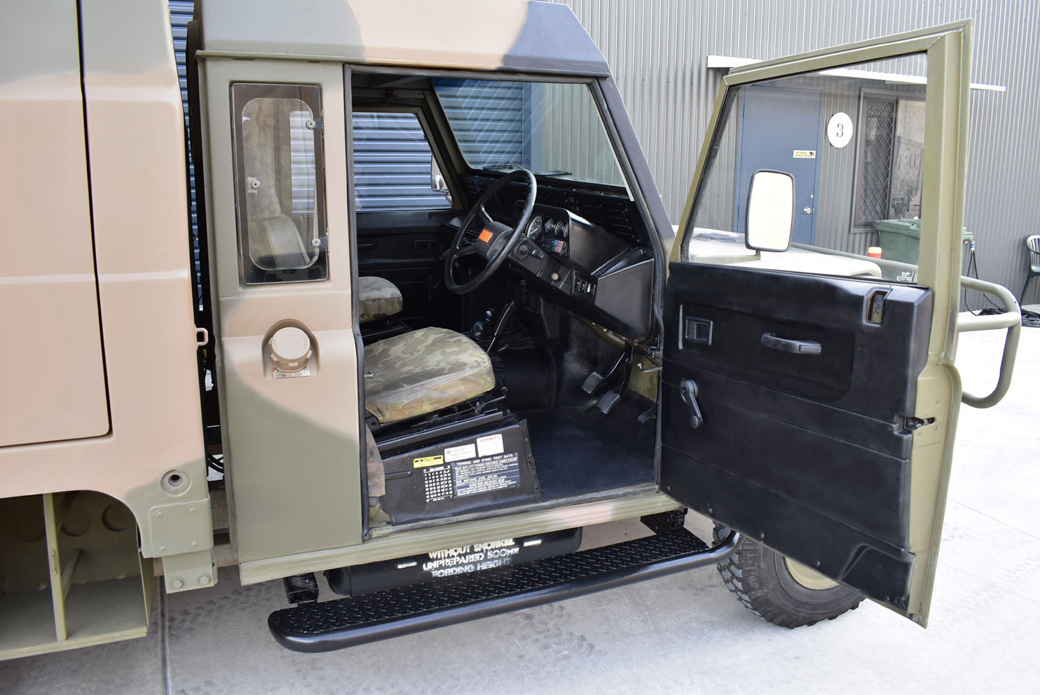 – Fitted from Factory with most reliable 3.9lt 4BD1T Isuzu Turbo Diesel Engine, Power steering, 4 spd Manual gearbox. Full time 4×4 and 6×6 on demand to tackle the toughest of terrains. These are 20cm wider than a normal Defender 110 to accommodate seating for 3 persons at the front.