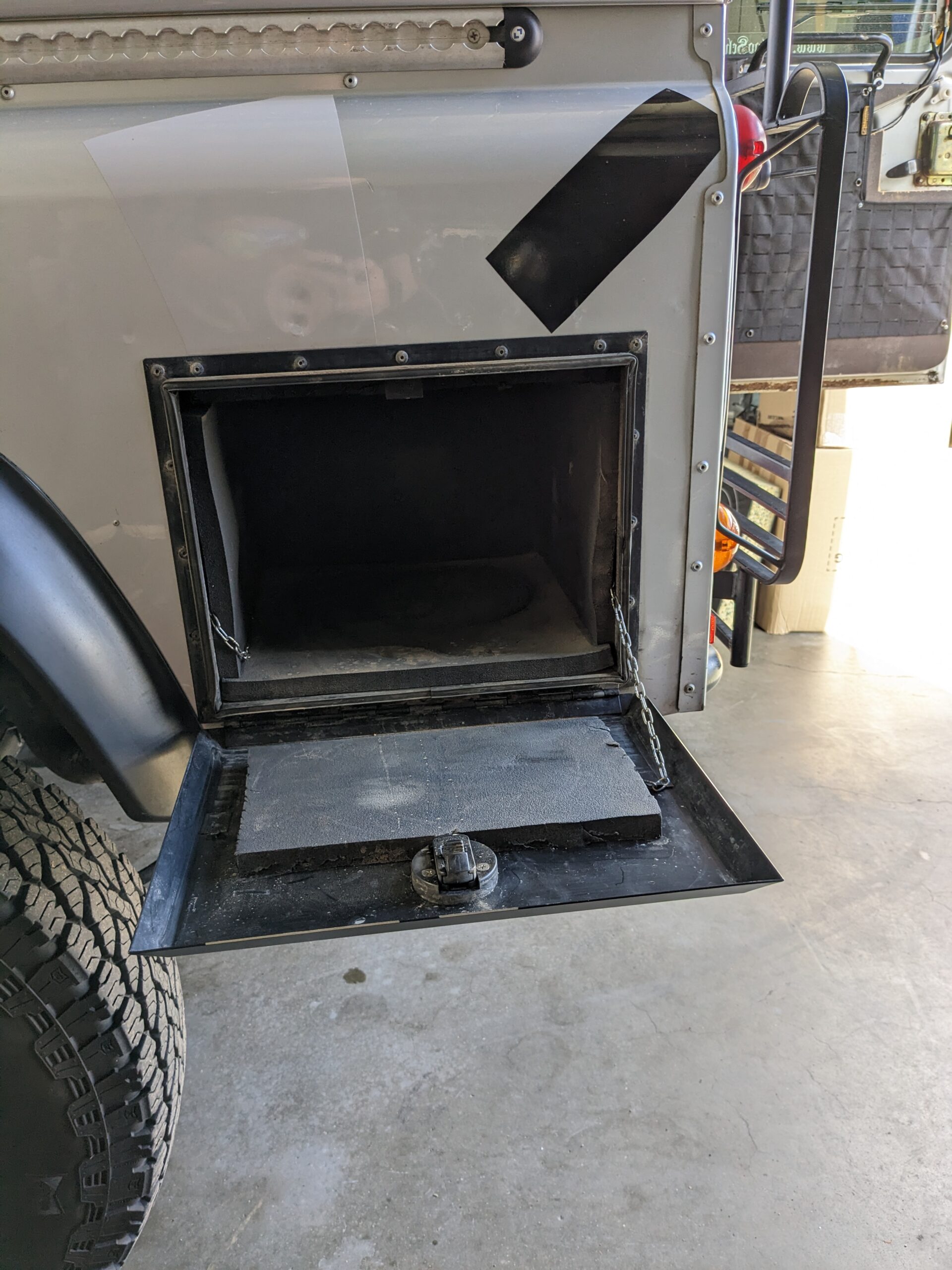 Staufach Kotflügel v. l./Staubox h. l./Snowcover v. r.