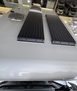 Solaranlage: 2 Büttner MT-SM 130 MC, Wechselrichter Büttner MT PL600Si, Batterie Büttner 120Ah, Solarladeregler Victron, Netzumschaltung für Warmwasser (Land/Batterie), Ladegerät IU1012 Perfect Charge