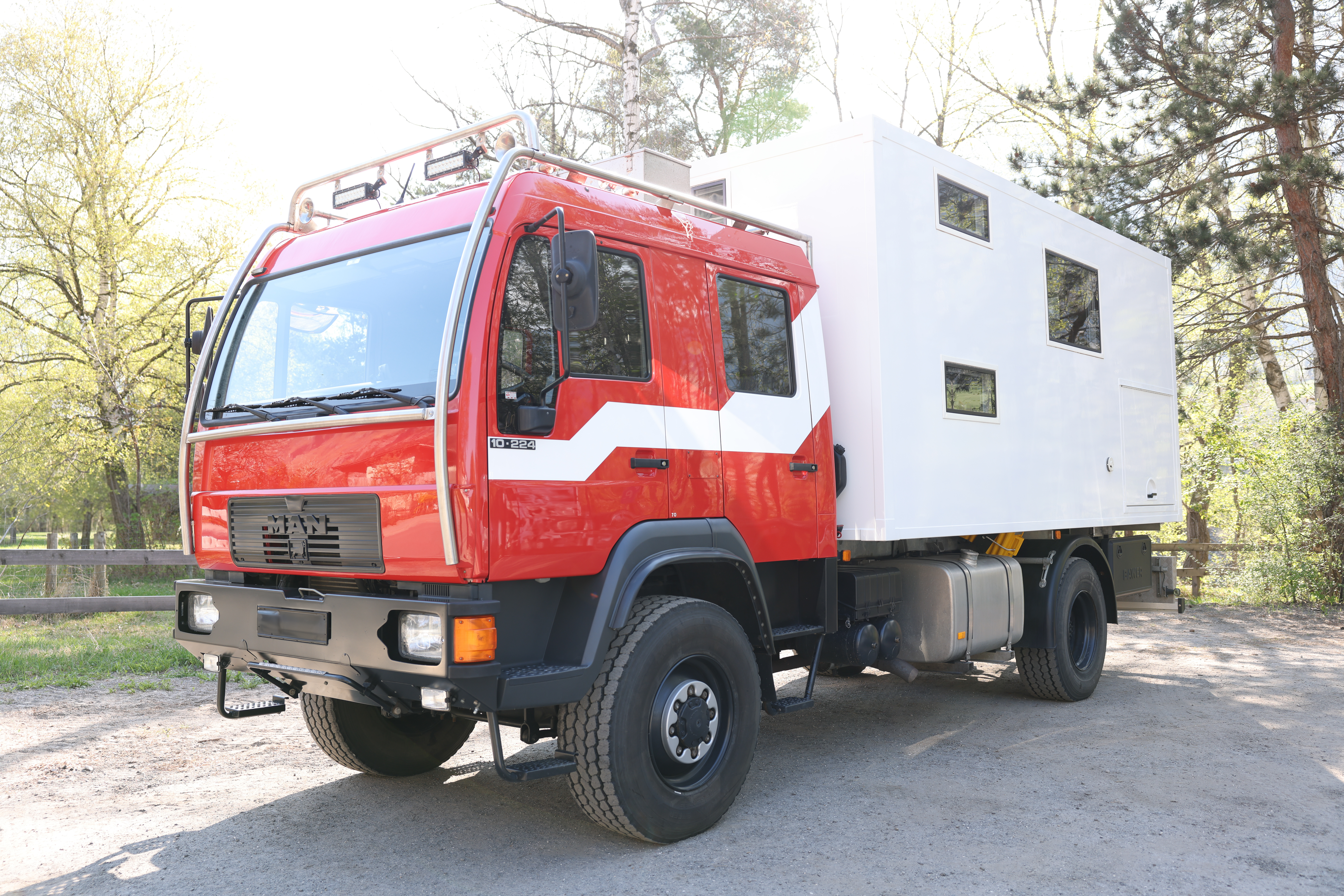 Robustes und voll ausgestattetes Reisemobil auf MAN 10.224 4×4 Basis perfekt für lange Reisen abseits der üblichen Routen.