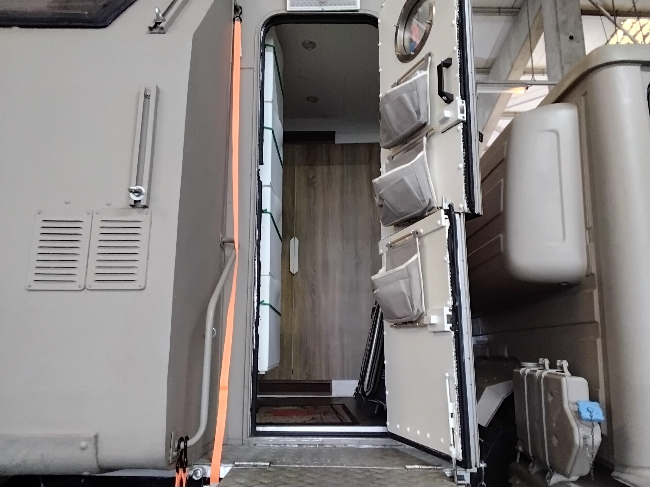 LAK II mit 80cm Verlängerung; Koffer ist mit 32mm Armaflex und 20mm Styrodur gedämmt;12V/220V Bordnetz mit Landanschluss, 4x 220Watt Solarpaneele über 32A Laderegler und 2x 100 Ah AGM Solarbatterien & 1x 100Ah Reservebatterie;400l Frischwasser, 75l Grau- Schwarzwasser, 40l Warmwasserboiler (aus Yachtbereich) 220V/700W- Warmwasserheizung durch Fahrzeug wärend der Fahrt, 1 Aktivkohlefilter zun befüllen, 1 Aktivkohlefilter nach Wassertank; in der Küche gibt es 1 Spüle, ein 2 Platten Induktionskochfeld, 90l/5l Kühlschrank; Ecksitzgruppe, 3 Schränke; Bad mit Dusche, Waschbecken und Trenntoilette; Bett- 140×200 cm; Heizung ist eine 5Kw Vebasto Dieselstandheizung mit Dieselfilter; 2 Stauräume von Aussen zugänglich, 1x 80x80x100cm, 1x 60x50x100cm, der Koffer hat 5 Fenster und 2 Dachluken.