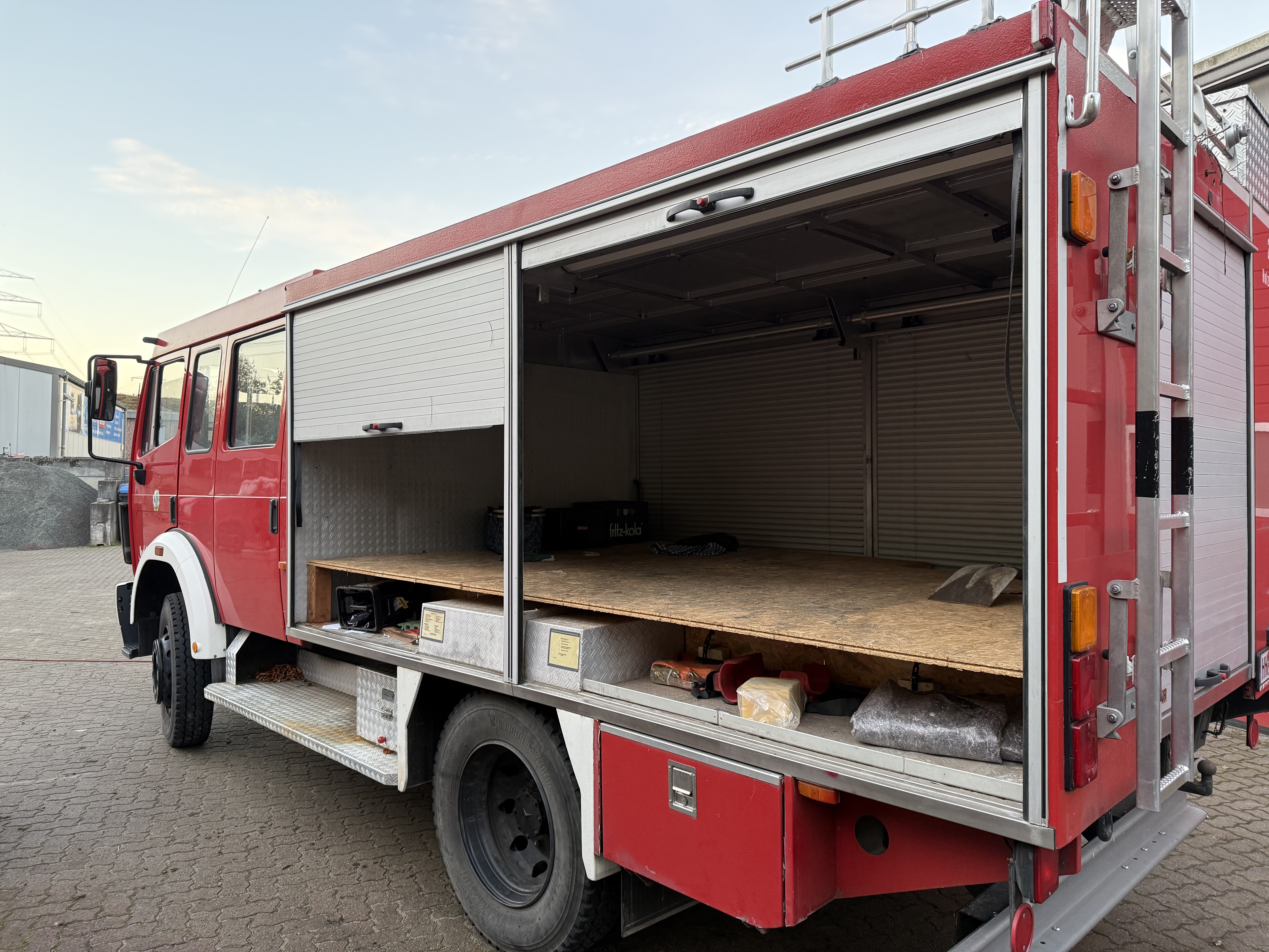Ich habe ihn vor ca. 5 Jahren als Feuerwehr-Löschfahrzeug gekauft, er war bei der Feuerwehr in Holzminden im Einsatz. Den Feuerwehr-Kram habe ich entfernt, einen Unterfahrschutz anbauen lassen (Zertifikat vorhanden), ein Bett, einen Kocher und einen Tisch eingebaut und ihn dann als Wohnmobil zugelassen. Der Plan war eigentlich, dass meine Frau sich mit ihm anfreundet und ich dann mit dem Umbau zum Expeditionsmobil beginne.
