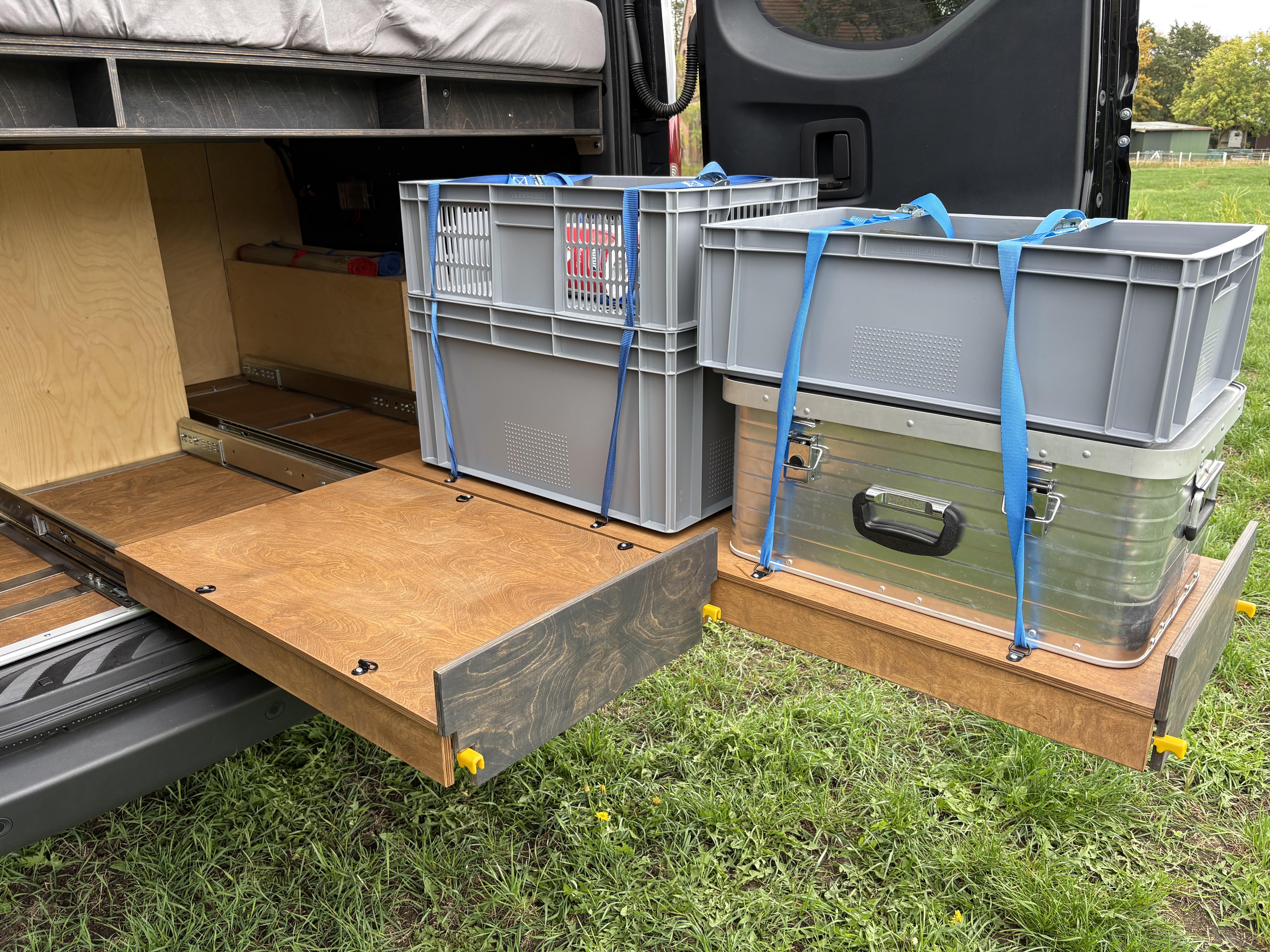・Hochwertiger, handgefertigter Holzausbau durch die Tischlerei Dünenkerl (2023/24) mit durchdachter Küchenzeile, großen Schubladen & reichlich Stauraum