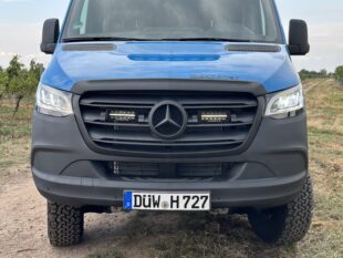 Geplant wurde das Fahrzeug als Offroad Camper und ist somit mit allen campingspezifischen Optionen wie Drehkonsolen und einer elektrisch beiziehenden Seitentür ausgestattet.