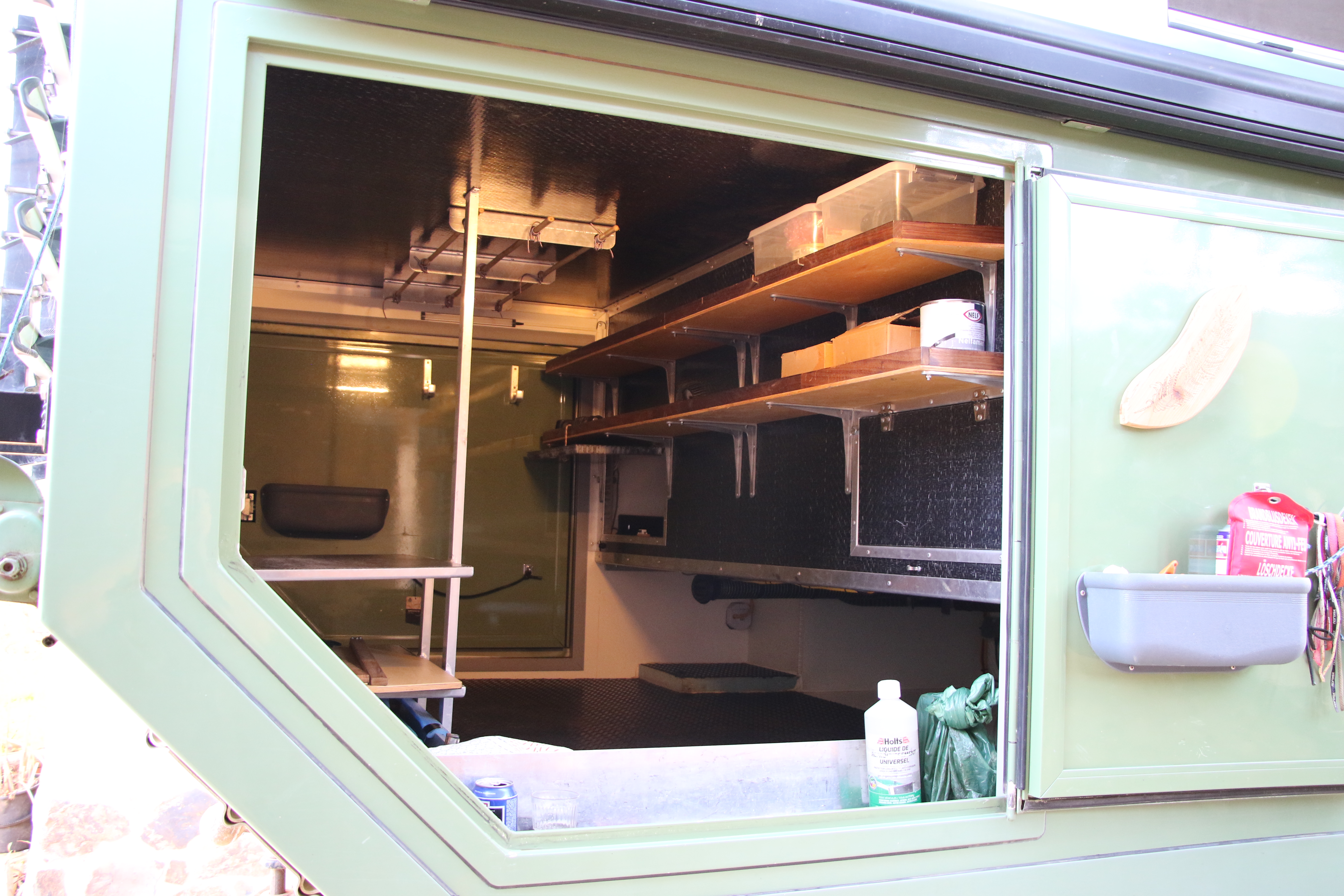 Front drivers cabin is in original colour of fire brigade Switzerland. Could be professionally spray painted in any colour by Doncamp.