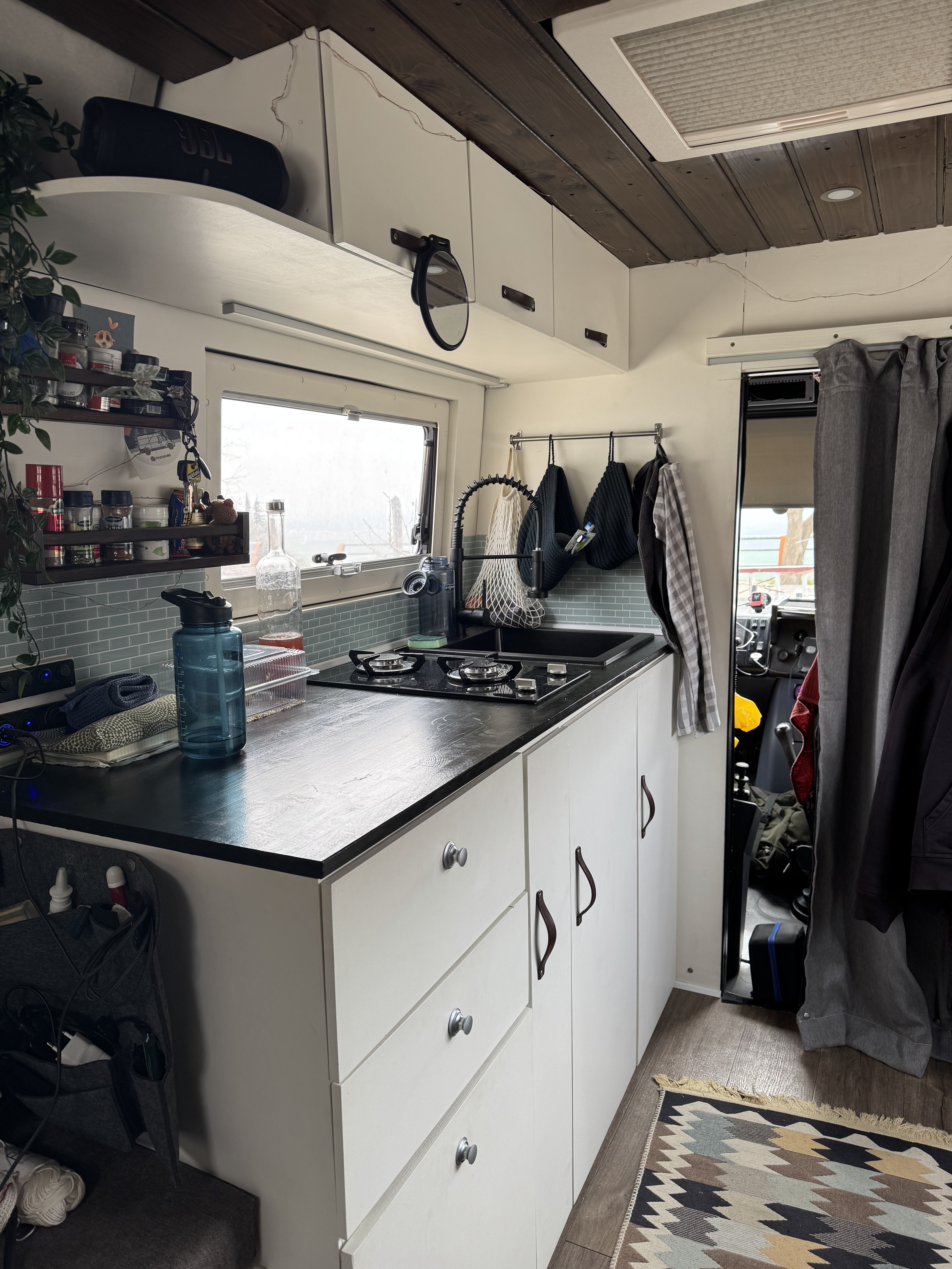 - Fest eingebaute LED Beleuchtung Küche und Bett Bereich, 4 LED Spots Decke