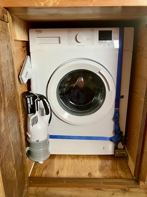 - 8.2 m long permanent clothesline in the shower room (also the entrance)