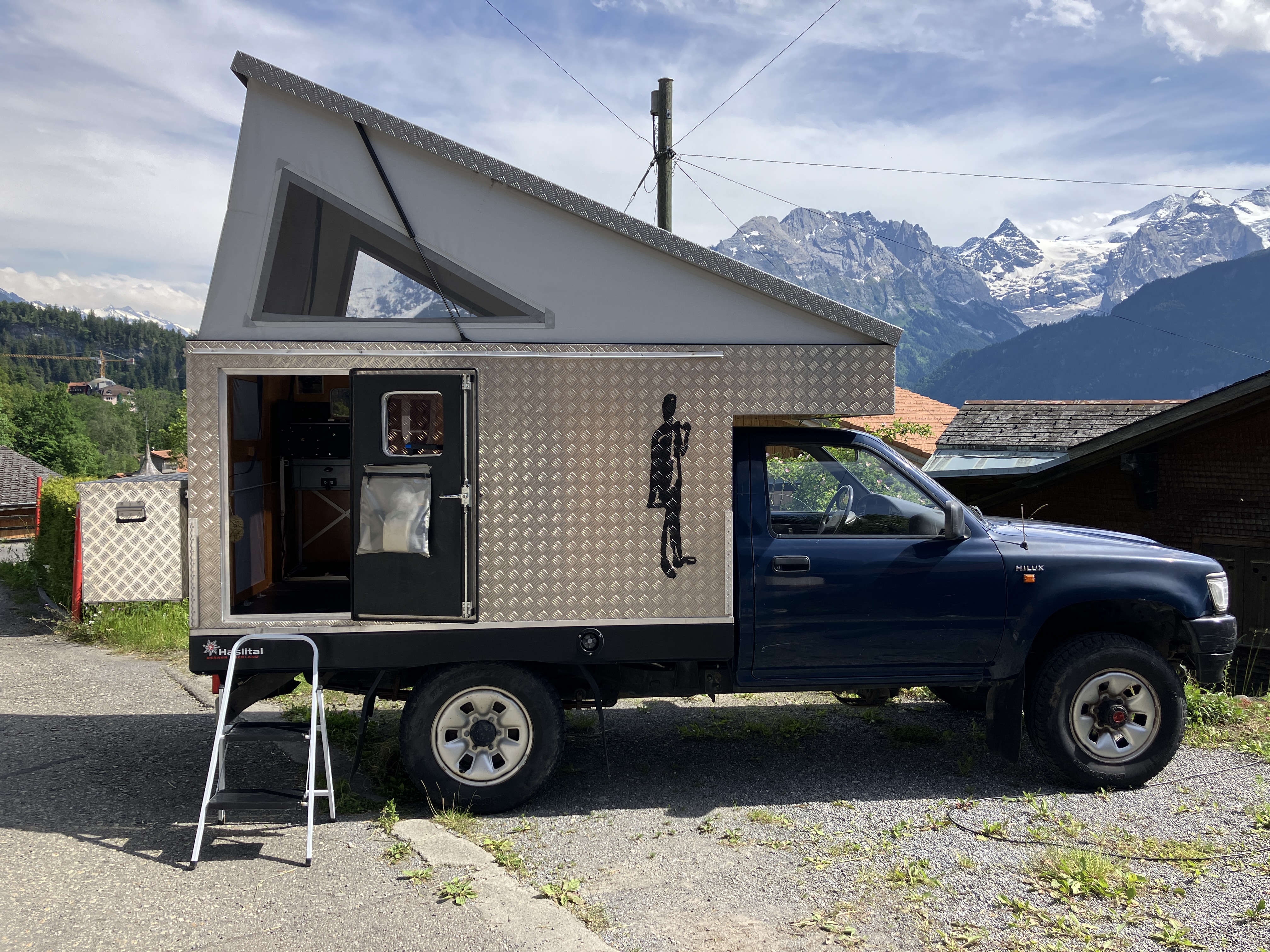 Kompakter Pickup mit Exkab 4s. Allradantrieb mit Untersetzung. Benziner mit 2.4Liter Hubraum. Wohnkabine Innen im Selbstausbau. Sehr zuverlässiges Fahrzeug mit einem Verbrauch von ca. 10 Litern bei gemäßigter Fahrweise (Mittelwert auf unserer Reise bis nach Georgien).