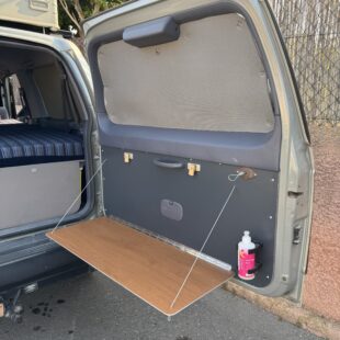 -Innenausbau mit Bett 80x190cm, Schrank und Dometic Kompressor-Kühlschrank, Platz für 4 Rako-Kisten und noch mehr Stauraum. In 40 Minuten umgebaut in 30 Minuten zurückgebaut: Hintere Sitzbank raus (4 Schrauben) und Möbelmodule mit Spanngurten an vorhandenen Laschen befestigen; fertig. Der Ausbau kann einfachst abgeändert werden damit auch 2 Personen drinnen schlafen können oder nur als Stauraum genutzt werden, sollte ein Dachzelt oben auf die RhinoRack Dachträger. Gewicht des Ausbaus 22kg (leichter als die Rückbank!) Das Paket Innenausbau, Kühlbox, ARB Kompressor, Verdunkelungen, ist separat für 2.000Eu zu haben.