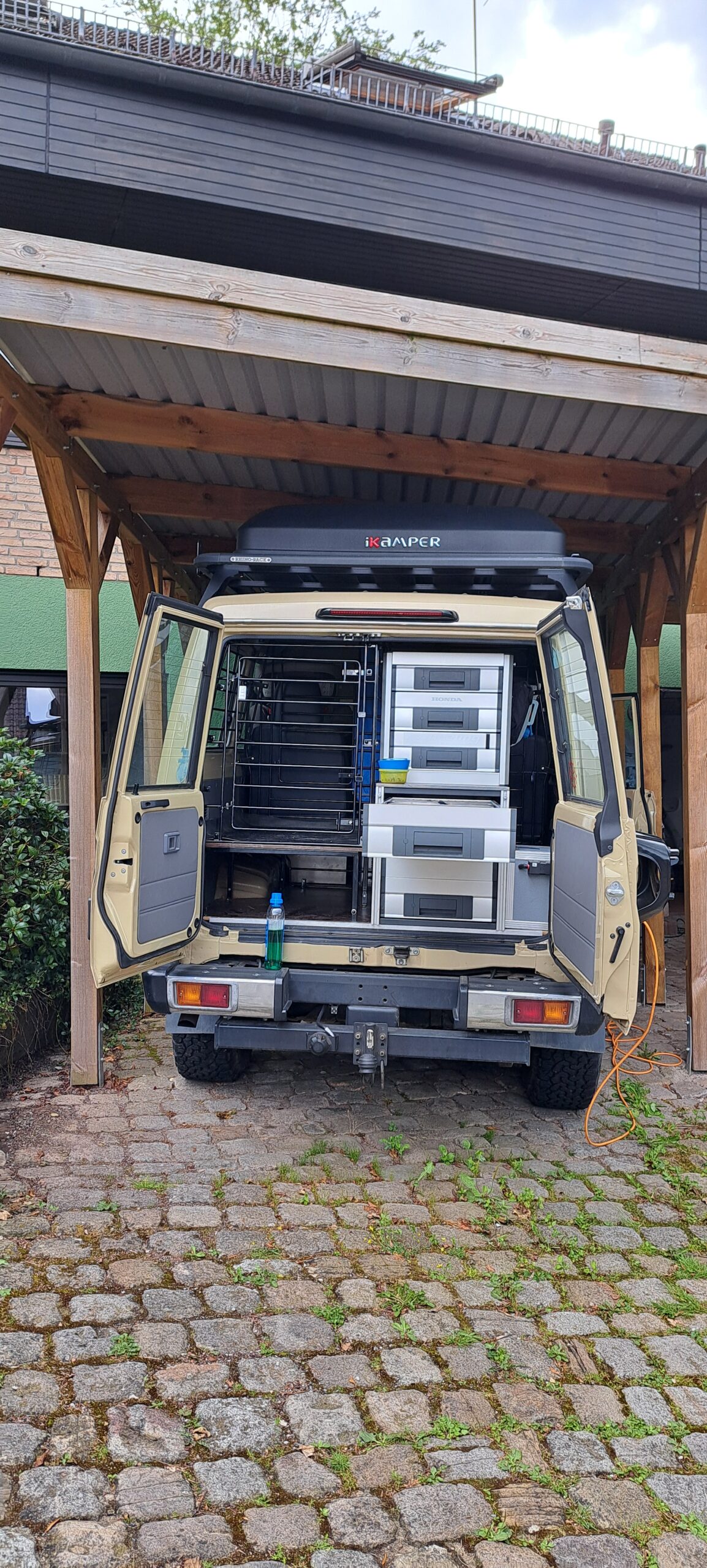 Wir verkaufen unser geliebtes Buschtaxi mit einem einzigartigen Setup und absoluter Topaustattung, da sich unsere Reisepläne geändert haben. Der Wagen befindet sich in einem Topzustand, bietet 4 Sitzplätze, 4 Schlafplätze und einen Käfig für Hunde oder schwere Ladungen. Durch das modifizierte Fahrwerk inklusive Lenkungsdämpfer, die breitere Spur und dazu passenden Reifen fährt dieses Buschtaxi unglaublich satt und souverän auf der Straße. Die Geländegängigkeit ist gegenüber dem Serienzustand enorm verbessert werden. Reserven ohne Ende!