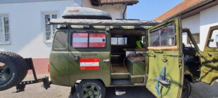 Wir verkaufen unseren UAZ 452 („Buchanka“), der mit vielen Extras zu einem Reisefahrzeug ausgebaut worden ist.