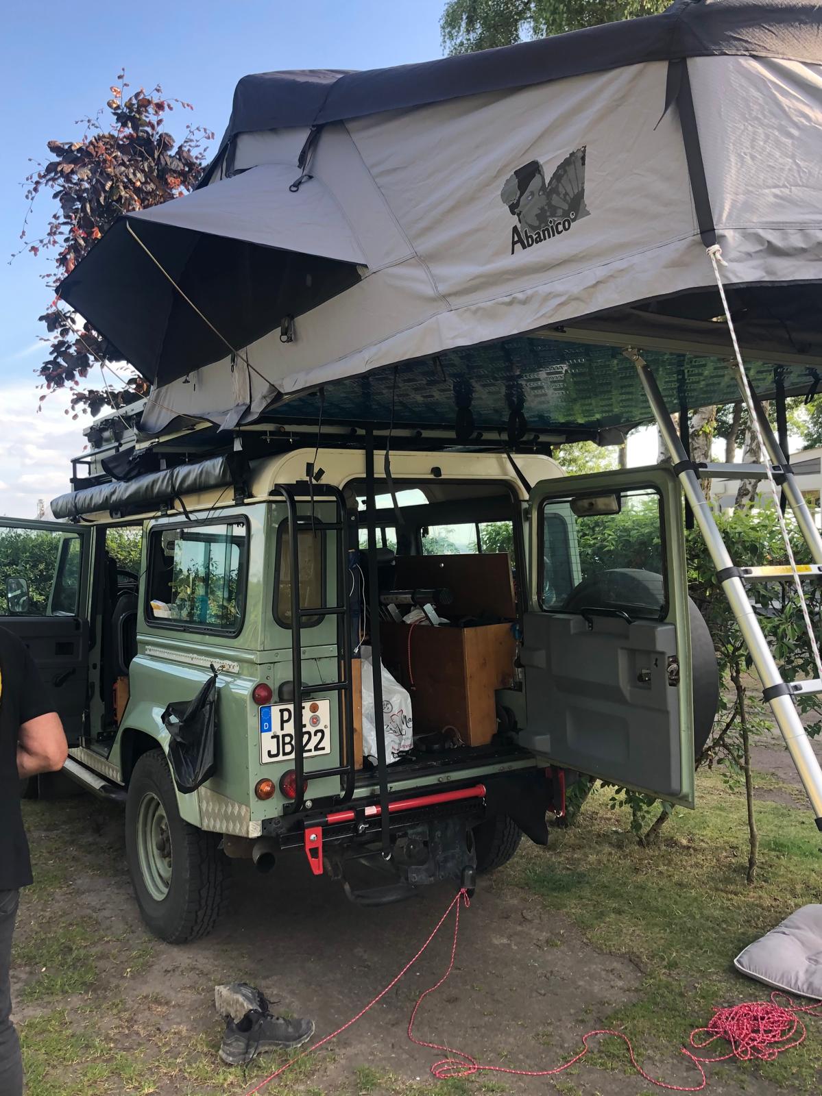 Der Landi würde für einen Rumänien Urlaub mit Dachzelt (tough) Markise, Vorzelt von Abanico ausgerüstet. Die Ausstattung wurde nur 7Wochen benutzt. Weitere Ausstattung: 150 AH LiFePo4, 1800Watt WR, MPPT Regler, 200 Watt Solar, Wasserkanister auf Auszug, Holzausbau, Küche durch Seitenfenster erreichbar, Klappbrett davor. 4Sitze für hinteren vom TD4 mit Kopfstützen und Gurten. Alle Bänke und Sitze vorhanden für einen Rückbau. Der Landi fährt super,würde immer gewartet und fällige Teile wurden getauscht. Leider sind die beiden hinteren Seitentüren durchgerostet und könnten geschweißt oder getauscht werden.
