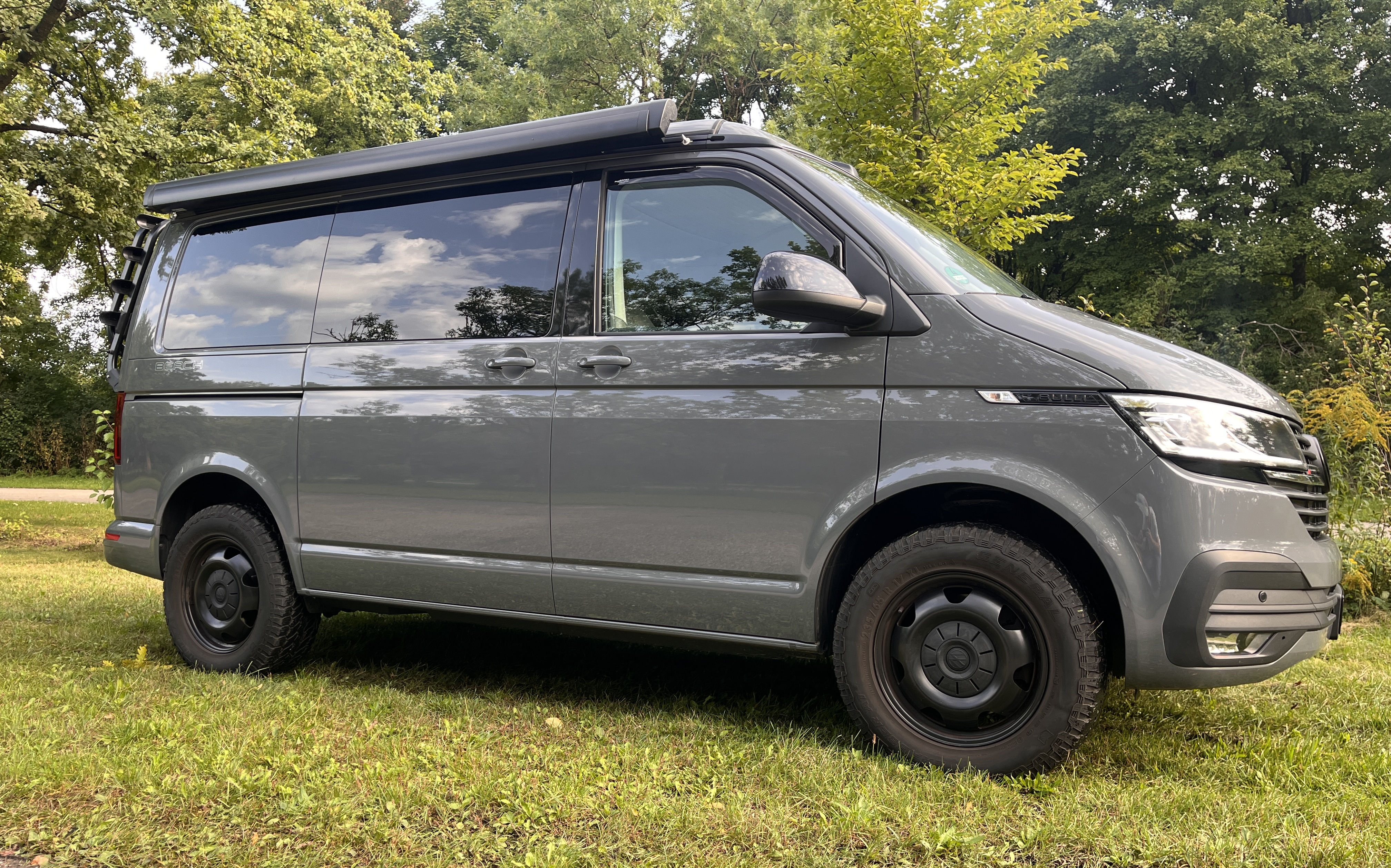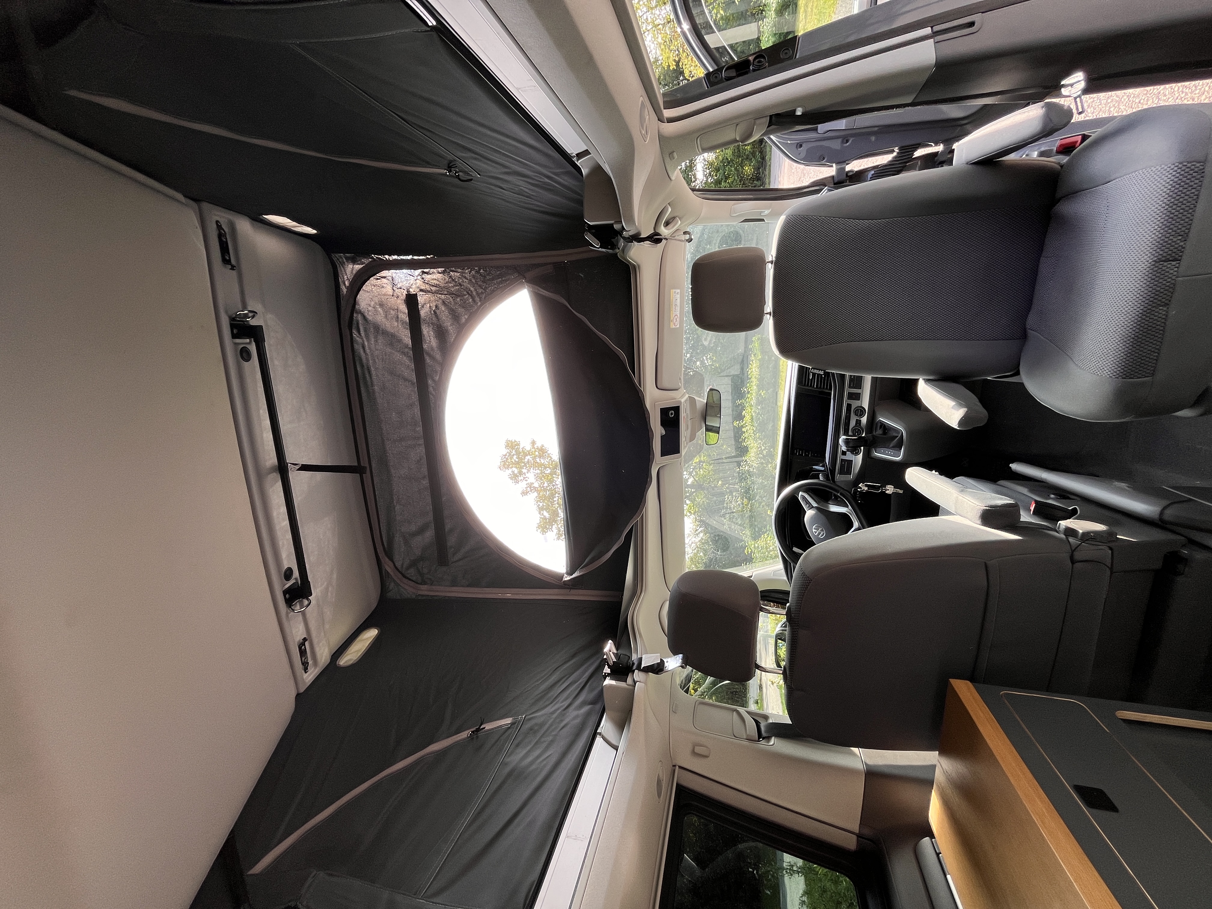 Aufstelldach manuell bedienbar, mit 3 Fenstern und einer Frontöffnung, Faltenbalg in Basalt Grey