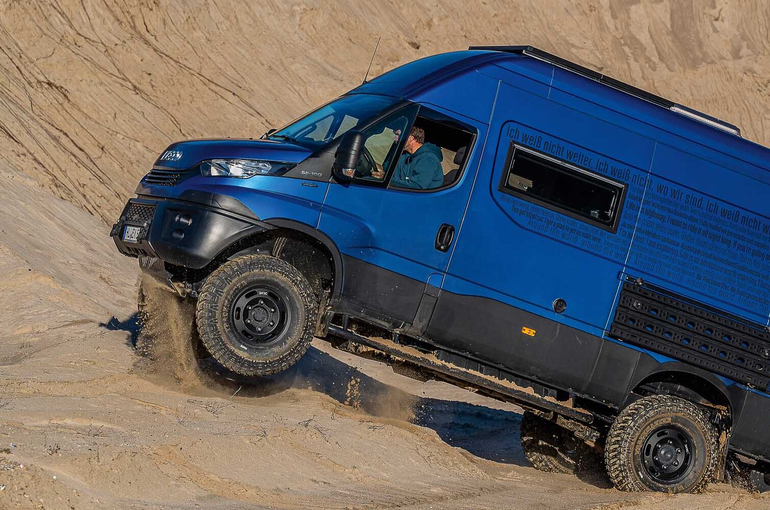 Mittlerweile ist klar: Der Daily 4×4 der jüngsten Baureihe hat es in der Beliebtheitsstatistik ganz schnell ganz weit nach vorn gebracht, alle Mängel und Malaisen hin oder her. Gerade der Siebentonner mit langem Radstand füllt schlichtweg eine Lücke zum Lkw auf, die mit Wegfall des Mercedes Vario so richtig kein anderer füllen konnte. Und mit der schnell wachsenden Popularität beginnt sich – zumindest in Europa – auch die Frage nach den passenden Reifen und Felgen zu lösen, wenn man mit der Originalkonfiguration nicht glücklich werden kann. Warum die Einschränkung „in Europa“? Weil so große, schwere Allrad-Transporter mit Einzelbereifung anderswo weiterhin Exotenstatus haben, es gibt schlichtweg keinen Grund für deren Existenz. In Afrika greift man bei Neuwagen gern auf chinesische Modelle zurück, im asiatisch-australischen Raum haben leichte Lkw wie der Nissan Atlas oder der in Deutschland so ungeliebte Fuso Canter dieses Segment besetzt, im nord- und südamerikanischen Raum übernehmen das XL-Pickups vom Schlag eines Ford F450 oder 750 – und sie alle fahren zwillingsbereift. Große Abrollumfänge mit hohen Traglasten sind im Rest der Welt das Aufgabengebiet von Lkw-Reifen, meist in 22,5 Zoll, Leicht-Lkw zwischen fünf und sieben Tonnen stehen meist auf 17,5 Zoll. Aber 16 oder gar 19,5 Zoll? Das ist zwischen Addis und Zhengzhou etwas für Geländewagen oder Anlass für fragende Gesichter.